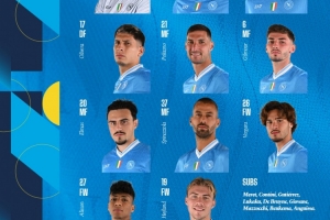 那不勒斯替補(bǔ):梅雷特、孔蒂尼、別克馬、古鐵雷斯、德布勞內(nèi)、馬佐基、安古伊薩、吉奧瓦尼、盧卡庫