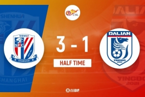 傷停補(bǔ)時7分鐘。上半場比賽結(jié)束,上海申花3-1大連英博。