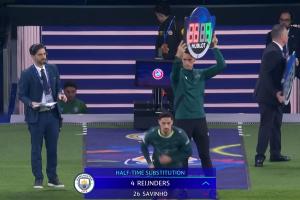 體育資訊03月12日訊 歐冠1/8決賽首回合,皇馬對陣曼城。兩隊半場均做出換人,皇馬用弗蘭·加西亞換下費蘭·門迪,曼城用賴因德斯換下薩維尼奧。