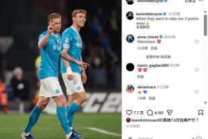 本場(chǎng)比賽德布勞內(nèi)替補(bǔ)登場(chǎng),賽后他也在社媒曬出與進(jìn)球功臣霍伊倫合照,配文寫道:“當(dāng)對(duì)手想從客場(chǎng)拿走我們?nèi)值臅r(shí)候??”