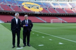 拍攝結(jié)束時,在球場邊線附近,緊挨著替補席,在各自重新與親信隨從會合后,他們用堅定地握手道別,互相祝福好運。今晚,兩人中只有一位將成為巴塞羅那足球俱樂部的主席。