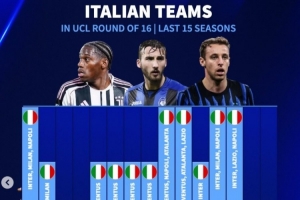 體育資訊2月26日訊 本輪歐冠附加賽,尤文加時憾負(fù)、國米被雙殺出局,亞特蘭大大逆轉(zhuǎn)晉級?!掇D(zhuǎn)會市場》也統(tǒng)計了近年歐冠16強(qiáng)的意甲球隊數(shù)量: