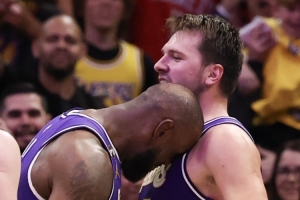 談到本場對(duì)于東契奇拿下40分準(zhǔn)三雙以及連進(jìn)關(guān)鍵球,詹姆斯說:“他整個(gè)賽季都是這么為我們打球的。過去一年里他都處于極佳的節(jié)奏之中,自從賽季開始就是如此。我們就是努力支持他,在防線后方支援他,當(dāng)他突破時(shí)做好準(zhǔn)備,做好接球就投的準(zhǔn)備,積極從后方空切。不過,他自己打進(jìn)了多記關(guān)鍵球,那記左側(cè)翼的后撤步三分真是關(guān)鍵,太強(qiáng)了。”