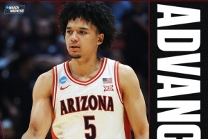 體育資訊3月23日訊 今日NCAA瘋?cè)?2強賽,賽區(qū)1號種子亞利桑那大學(xué)78-66擊敗賽區(qū)9號種子猶他州立大學(xué),晉級16強。