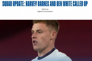 28歲的哈維·巴恩斯此前在2020年代表英格蘭隊(duì)有過1次出場,28歲的本·懷特曾有過4次出場,這也是自2022年入選英格蘭世界杯名單后,時(shí)隔近4年這名球員重返英格蘭隊(duì)。