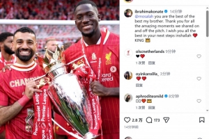 科納特曬出與薩拉赫的捧杯合照,配文:“你是最佳中的最佳,我的兄弟。感謝你在場上場下與我共同度過的所有美妙時刻,祝你在未來的征程中一切順利。”