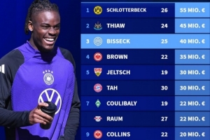 體育資訊3月25日訊 德國轉(zhuǎn)會市場盤點了德國后衛(wèi)身價,施洛特貝克排名第一,而沒有入選德國本期名單的比塞克排在第三。