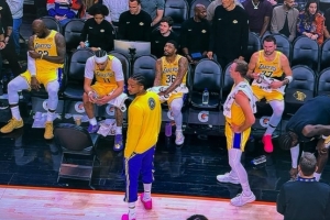 Lakers Daily配文寫道:“這張照片勝過千言萬語?!?/p>