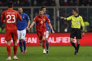 2022年3月,世界杯附加賽半決賽,意大利補(bǔ)時(shí)遭絕殺,0-1爆冷不敵北馬其頓,無緣2022卡塔爾世界杯。那場(chǎng)比賽的主裁判,正是法國主裁蒂爾潘。