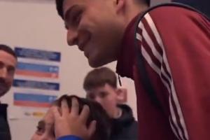 ESPN曬出視頻,正隨西班牙征戰(zhàn)的巴薩中場佩德里贏得了球迷們的廣泛歡迎,在他與球迷見面時,一名小球迷看到自己的偶像甚至激動地哭了出來。佩德里也親切地與他交談并合影。
