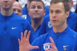 比賽最后時刻,杜克領(lǐng)先2分并握有球權(quán)后場底線發(fā)球。他在球隊發(fā)出球后指揮球員向前場推進導(dǎo)致最后被搶斷三分絕殺。