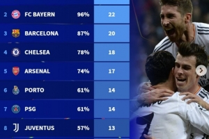 體育資訊2月27日訊 本賽季歐冠淘汰賽抽簽在即,德轉也盤點了歐冠自03/04賽季改革賽制之后,各支球隊晉級16強次數(shù)榜,具體如下(晉級成功率+次數(shù)):