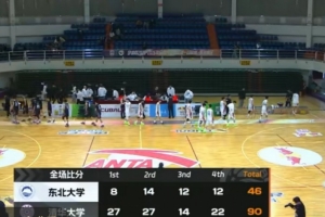末節(jié)比賽,東北大學(xué)進(jìn)攻回暖,連投帶罰拿分努力追趕,但清華大學(xué)外線開火,許熙桐和何文煒先后飆中三分?jǐn)U大領(lǐng)先,東北大學(xué)火力無法延續(xù),清華大學(xué)繼續(xù)拉開分差,最終,清華大學(xué)90-46以44分的優(yōu)勢大勝東北大學(xué)。
