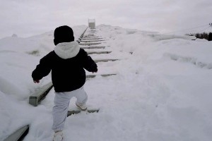 書豪曬照告別2月:兒子第一次看雪 找各種辦法為了不讓自己打呼