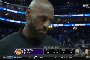 體育資訊3月1日訊 今日,湖人129-101客場(chǎng)擊敗勇士。賽后,湖人球星詹姆斯接受了采訪。