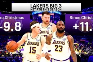 體育資訊3月3日訊 今日,電視節(jié)目《First Thing First》曬出一組湖人三巨頭東契奇、詹姆斯、里夫斯的同場凈效值數(shù)據(jù)對比。