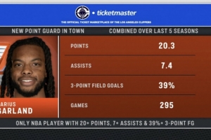 過(guò)去5個(gè)賽季,加蘭場(chǎng)均20.3分7.4助攻,三分命中率39%,是過(guò)去5個(gè)賽季聯(lián)盟唯一場(chǎng)均達(dá)到這三項(xiàng)數(shù)據(jù)的球員。