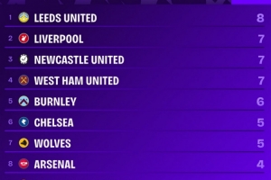 Squawka統(tǒng)計了本賽季各隊英超比賽90分鐘或以后的丟球數(shù)量,并列出榜單,利茲聯(lián)8球最多,利物浦7球并列次席。