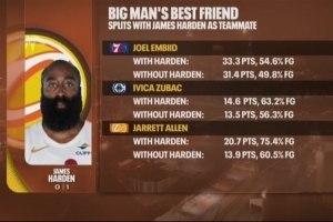 與哈登搭檔時: 33.3分,投籃命中率54.6%
