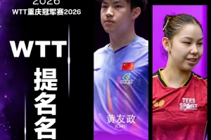 WTT重慶冠軍賽2026將于3月10日至15日舉辦,本站賽事冠軍將獲得1000點(diǎn)世界排名積分。