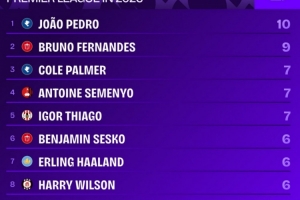體育資訊3月5日訊 Squawka統(tǒng)計了2026年球員在英超的參與進(jìn)球數(shù)量,并列出榜單,若昂·佩德羅參與10球居首,B費參與9球次席。