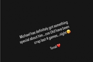 斯科爾斯寫道:“邁克爾(卡里克)身上肯定有某種特別之處……因為曼聯(lián)最近4場比賽表現(xiàn)簡直爛透了……晚安??托納利??”