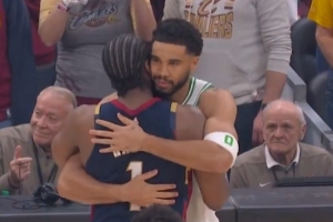 比賽期間哈登和剛剛復(fù)出的塔圖姆進行了簡短交流,當(dāng)被問到兩人說了什么時,哈登說:“我只是告訴他,當(dāng)你看到一個如此年輕、如此有天賦,并且已經(jīng)取得了這么大成功、贏得了總冠軍的球員,然后突然遇到了挫折,他還能保持著‘什么都無法阻擋我’的心態(tài)回歸,復(fù)出第一場就打得很好,今晚也打得很好,這本身就是一種鼓舞?!?/p>