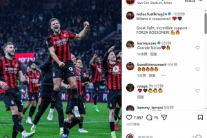 菲爾克魯格此役為米蘭替補出場,賽后他在社交媒體上曬出慶祝的照片,配文:“米蘭是紅黑色的!”