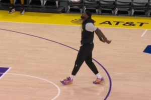 “左肘挫傷和左腳關(guān)節(jié)炎是詹姆斯在常規(guī)賽中一直面臨的問題,”Malika Andrews說,“他像往常一樣完成了賽前熱身——今早7點(diǎn)45分,他首位抵達(dá)球館;8點(diǎn)45分便開始在場上進(jìn)行常規(guī)賽前訓(xùn)練。(視頻)畫面中可見當(dāng)時(shí)他的狀態(tài)相當(dāng)不錯(cuò),但腳部反應(yīng)未達(dá)到湖人隊(duì)及訓(xùn)練團(tuán)隊(duì)的預(yù)期。因此在距離開球約一小時(shí)時(shí),球隊(duì)宣布他本場休戰(zhàn)。據(jù)了解,此次缺陣主要源于腳部問題而非肘部傷勢,接下來他將進(jìn)入逐日觀察狀態(tài)?!?/p>