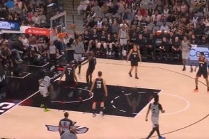 談到自己單打阿門的單手上籃,文班亞馬說道:“有時候我只是隨性發(fā)揮一下而已(I'm just freestyling sometimes)?!?/p>