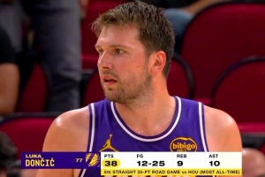 湖人客場(chǎng)再勝火箭,東契奇砍下40分。