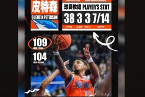 本場比賽,福建外援皮特森表現(xiàn)出色,進攻端勢不可擋,外線神準的同時殺傷力也很強,最后時刻連續(xù)五罰全部命中,首發(fā)出戰(zhàn)30分鐘,投籃23中10,三分球14中7,罰球13中11,砍下38分3籃板3助攻3搶斷的數(shù)據(jù),正負值+12。