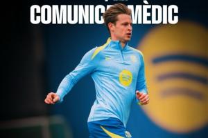 巴薩官方:一線隊球員弗倫基·德容在今日上午的訓練中,右大腿遠端股二頭肌受傷。檢查結果確認,其康復周期預計為5至6周。