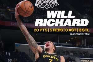 勇士官方曬出理查德海報(bào),理查德成為自2012年4月16日的克萊·湯普森之后,首位打出這一數(shù)據(jù)的勇士新秀??。
