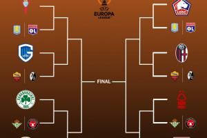淘汰賽附加賽晉級(jí)8隊(duì)(非種子隊(duì)):亨克(比甲)、博洛尼亞(意甲)、斯圖加特(德甲)、費(fèi)倫茨瓦羅斯(匈甲)、諾丁漢森林(英超)、塞爾塔(西甲)、里爾(法甲)、帕納辛納科斯(希臘超)