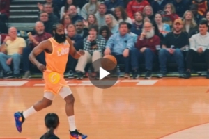 體育資訊3月25日訊 今日騎士戰(zhàn)勝魔術(shù)的比賽中,哈登上演個(gè)人賽季首扣。
