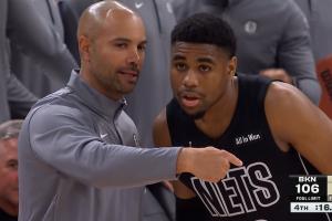 演都不演了?籃網(wǎng)最后先慢三步上籃過(guò)橋 然后后場(chǎng)扔三分直接結(jié)束