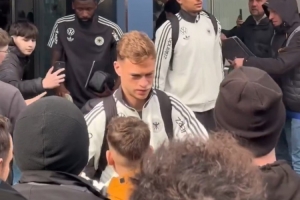 基米希在德國4-3加比瑞士的比賽中被肘擊受傷,今天以基米希為首的球員們?nèi)猿槌龃罅繒r間為球迷簽名合影,基米希在頭部裂傷后上唇貼著一塊厚創(chuàng)可貼。