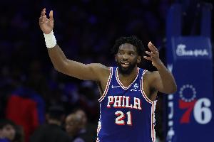本場比賽,76人中鋒恩比德出場35分鐘19投8中,三分6中3、罰球13中10拿到29分6籃板2助攻2蓋帽,正負(fù)值+5。