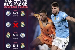 皇馬與曼城再歐冠共有過交手15場,其中有12場是在淘汰賽中,淘汰賽皇馬4次晉級,曼城2次。小組賽3場交手兩隊(duì)各1勝1平1負(fù)。