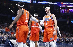 亞歷山大:“總得有個平衡。在第四節(jié)的最后一攻,我迎著兩個人投籃,僅僅是因為我感覺很好。所以這里總有個平衡。但我就是信任我的隊友,我每天都能看到他們的努力,我看到了他們在籃球場上的能力。我看到了他們打得多努力,有多拼,我看到了他們做出的所有不被注意的微小貢獻。當他們處于那些時刻,并且準備好去迎接那些時刻時,他們配得上這些機會。歸根結(jié)底,如果他處于空位,他就會去投,就好像他之前連進了10個一樣。這就是我欣賞卡魯索的地方。每一次他得到投籃機會,他都會給自己一個進球的機會。他已經(jīng)證明了這一點,他可能投丟了前幾個,但今晚他投進了一個關(guān)鍵球。在去年的季后賽中,他投進了無數(shù)個關(guān)鍵球。他證明了他配得上這些時刻,他享受這些時刻,并帶著十足的信心去迎接它們。所以他今晚投進這一球,我一點也不驚訝?!?/p>