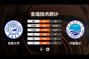 加時賽,雙方打得依舊很膠著,中國海大雖然一直保持微弱領(lǐng)先,但吉林大學(xué)始終緊咬,不過隨著段世鐳等人的命中率下滑,中國海大沒有再給對手機會,最終中國海大92-89險勝吉林大學(xué)。
