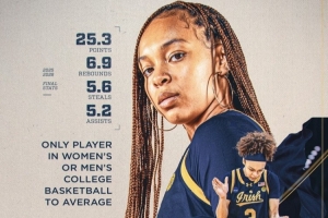 本賽季,希達(dá)爾戈場(chǎng)均可以拿到25.3分6.9籃板5.2助攻5.6搶斷。她是21世紀(jì)以來NCAA男女籃首位單賽季場(chǎng)均達(dá)到25+5+5+5的球員。