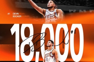 本場比賽之前,布克的生涯總得分為17966分,在第四節(jié)他拿到個人第34分后,布克的生涯總得分達到18000分。