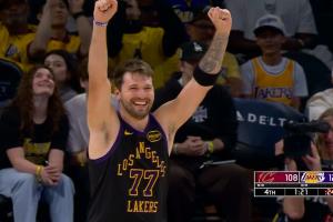 GIF-東契奇雙手勉扣!詹姆斯起立致意!