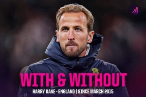 體育資訊4月1日訊 英格蘭在友誼賽中0-1不敵日本,凱恩缺席此役,Opta統(tǒng)計(jì)了凱恩在場(chǎng)、缺席情況下英格蘭隊(duì)的戰(zhàn)績(jī)。