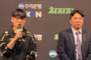 Gumayusi:選擇這兩個的話是因為用她們打出了不錯的表現(xiàn),選擇蕓阿娜的話是因為她皮膚不太多而女槍的話第五局的時候用這個角色打出了一些小亮點覺得很有意義。皮膚形式的話因為是第三個皮膚了,所以以比去年更漂亮做出考慮,考慮了很多種組合形式,然后拳頭方面也在努力地準備,我很期待