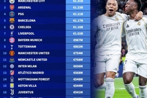 體育資訊4月2日訊 德國轉(zhuǎn)會市場公布了新一期的俱樂部身價情況,皇馬以13.4億歐居首,曼城以13.1億歐次之,阿森納則以12.3億歐位居第三。