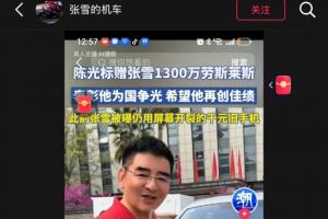 張雪回應陳光標送1300萬勞斯萊斯:找車商8折收了 錢捐給嫣然天使