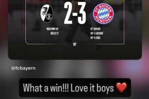 凱恩曬出了比分海報,并艾特了拜仁官方社媒,同時評論道:“多么精彩的勝利!愛了愛了,小伙子們!”